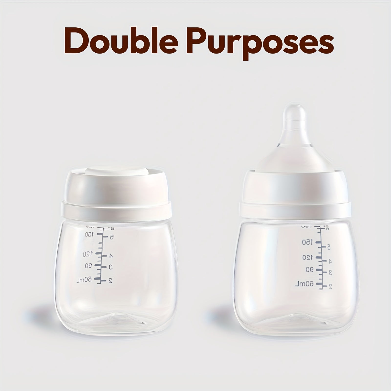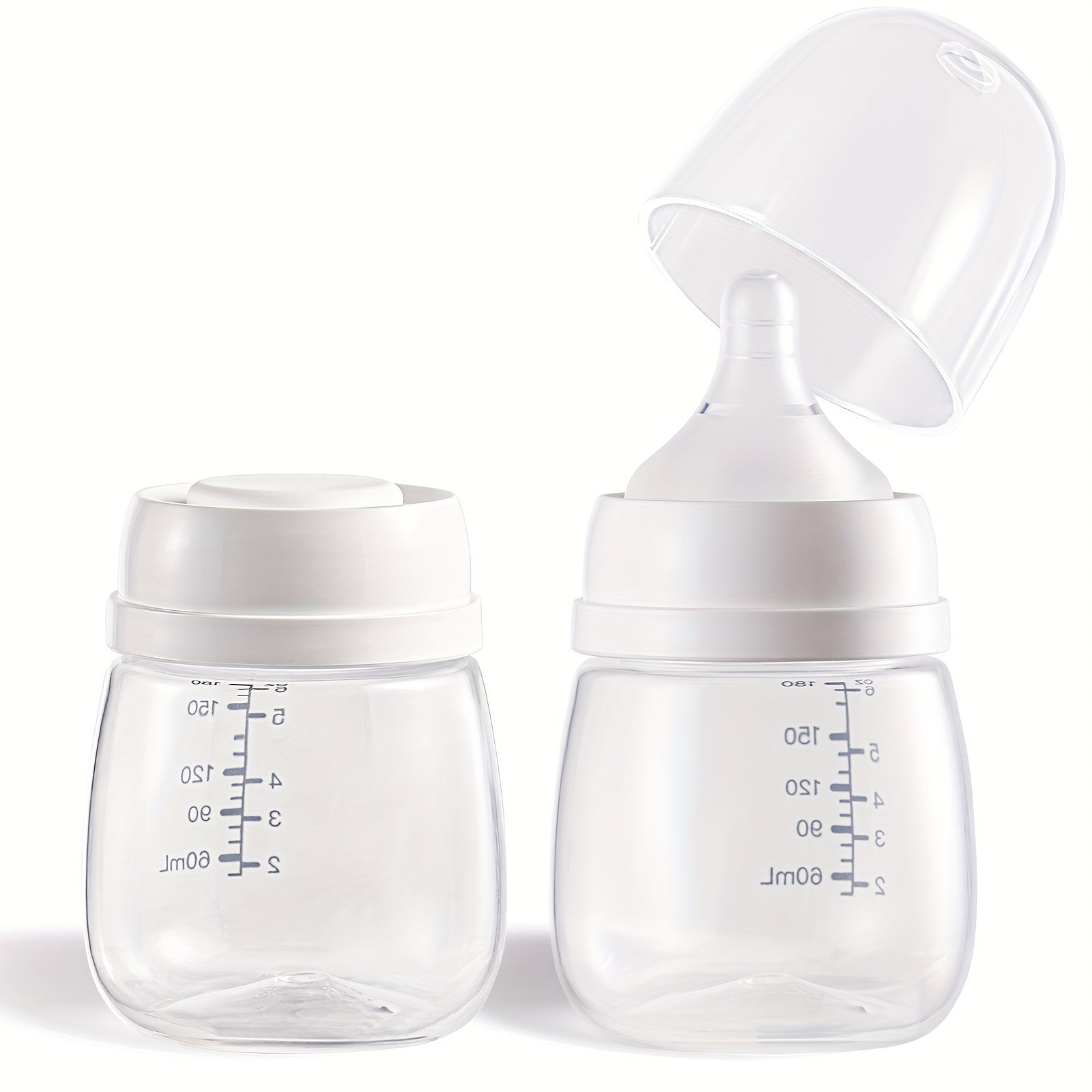 2pcs Breast Milk Preservation Bottle Set, BPA-Free Polypropylene Wide Bore, 6oz (180ml) Bottles with Nipples and Lids, for Collection, Storage, and Feeding, for